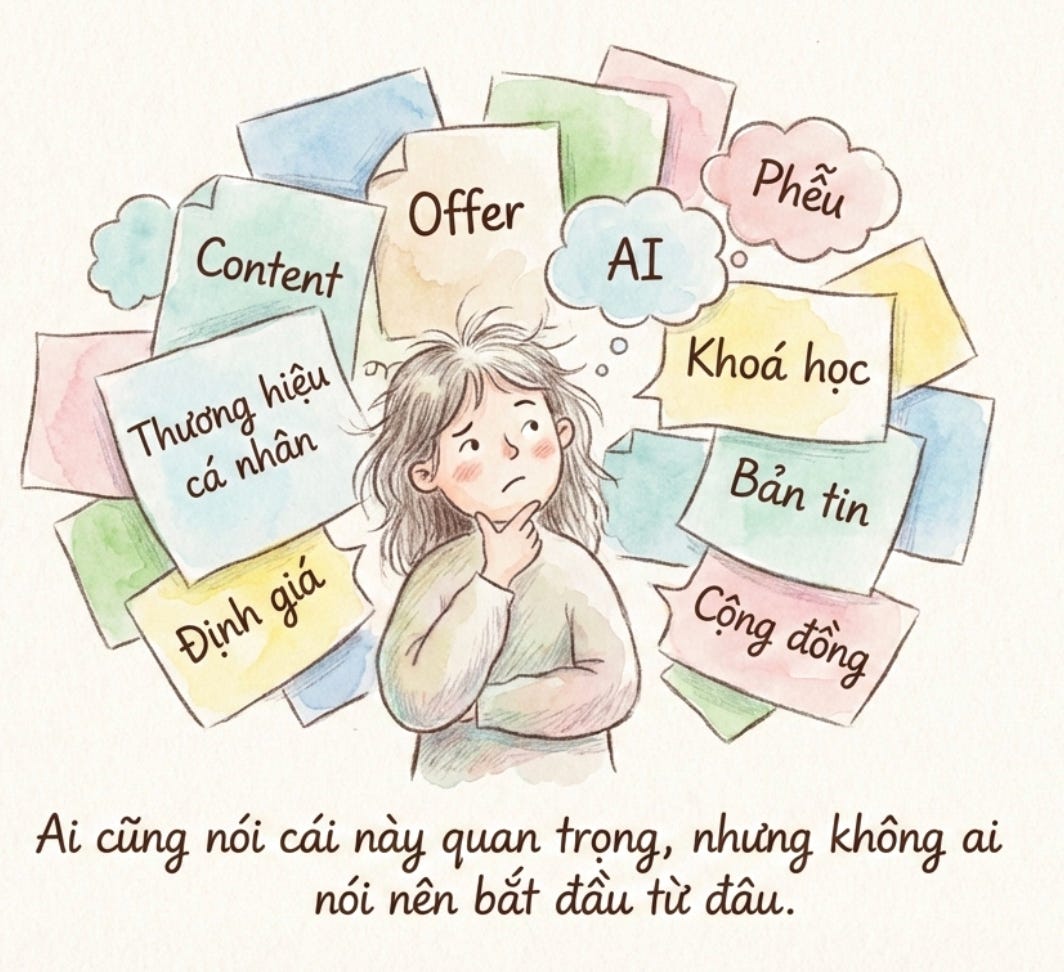 Nếu có một điều mình thấy lặp lại sau rất nhiều hành trình, thì đó là: rất nhiều solo expert không thiếu năng lực, mà thiếu một điểm tựa để ra quyết định. Không biết nên bắt đầu từ đâu, nên làm gì trước, và đâu là con đường phù hợp với chính mình ở thời điểm này.