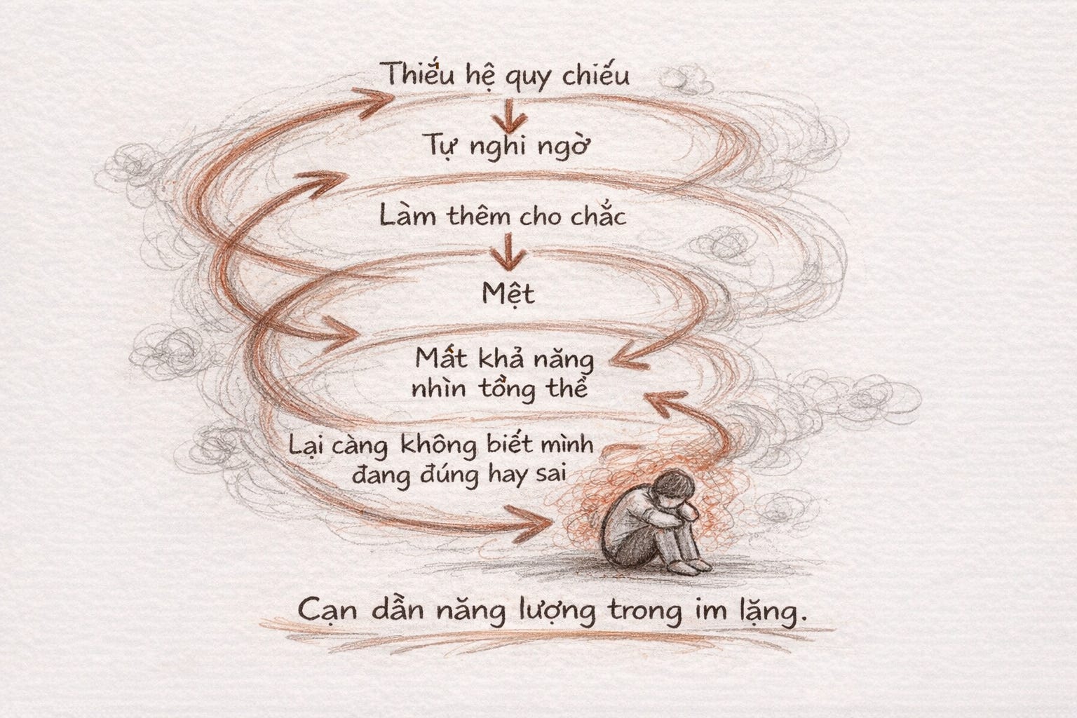 Khi không có tiêu chí rõ ràng để quyết định, mỗi lựa chọn nhỏ đều tiêu hao năng lượng. Và càng mệt, khả năng ra quyết định càng giảm. Lúc đó, việc chỉnh sửa, bổ sung, làm đi làm lại dễ bị nhầm tưởng là chăm chỉ, trong khi thực chất chỉ là một dạng trì hoãn được ngụy trang.